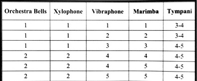 The site below offers specific percussion instrumentation suggestions.